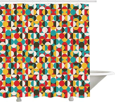 Yeuss Tenda da Doccia contemporanea, Motivo a Quadretti Colorati con Mezze Cerchi Design Ispirato a Mano Vintage, Motivi da Bagno in Tessuto con Ganci, Multicolore: Amazon.it: Casa e cucina